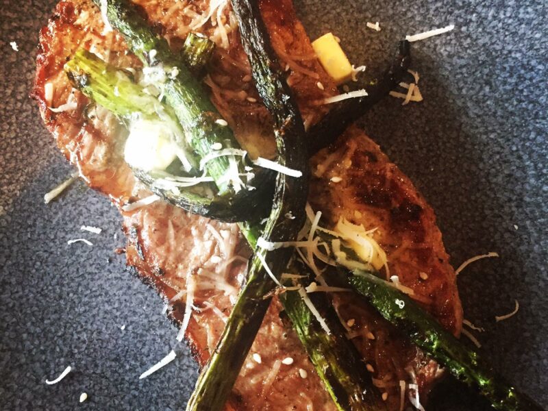 BBQ Gerechten EntrecoteEntrecote met gegrilde groene asperges met sesamzaad en parmezaanse kaas. Het was weer heerlijk!De entrecote is van de limousine koeien van Aogeler rund te Agelo.