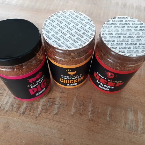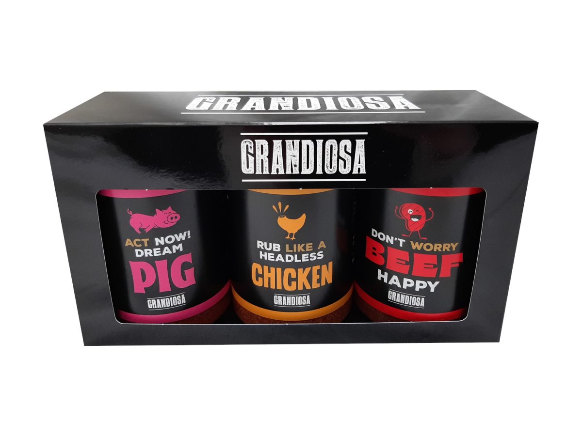 Grandiosa BBQ cadeau – BBQ rubs trio – varken – kip – rund – 3x 275 gram